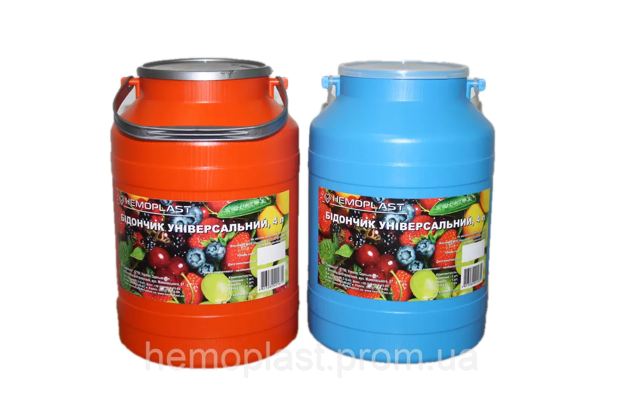 Бідончик універсальний 4 літріва пластиковий з кришкою і ручкою Гемопласт
