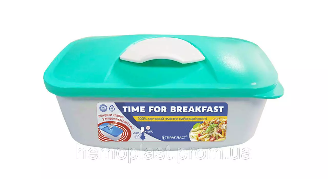 Контейнер харчовий «Time for breakfast» 500 мл мятний з клапаном для підігріву в СВЧ ТМ Тірапласт
