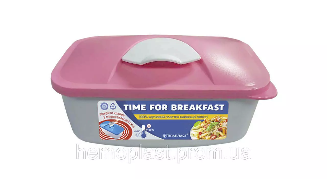 Контейнер харчовий «Time for breakfast» 500 мл рожевий з клапаном для підігріву в СВЧ ТМ Тірапласт