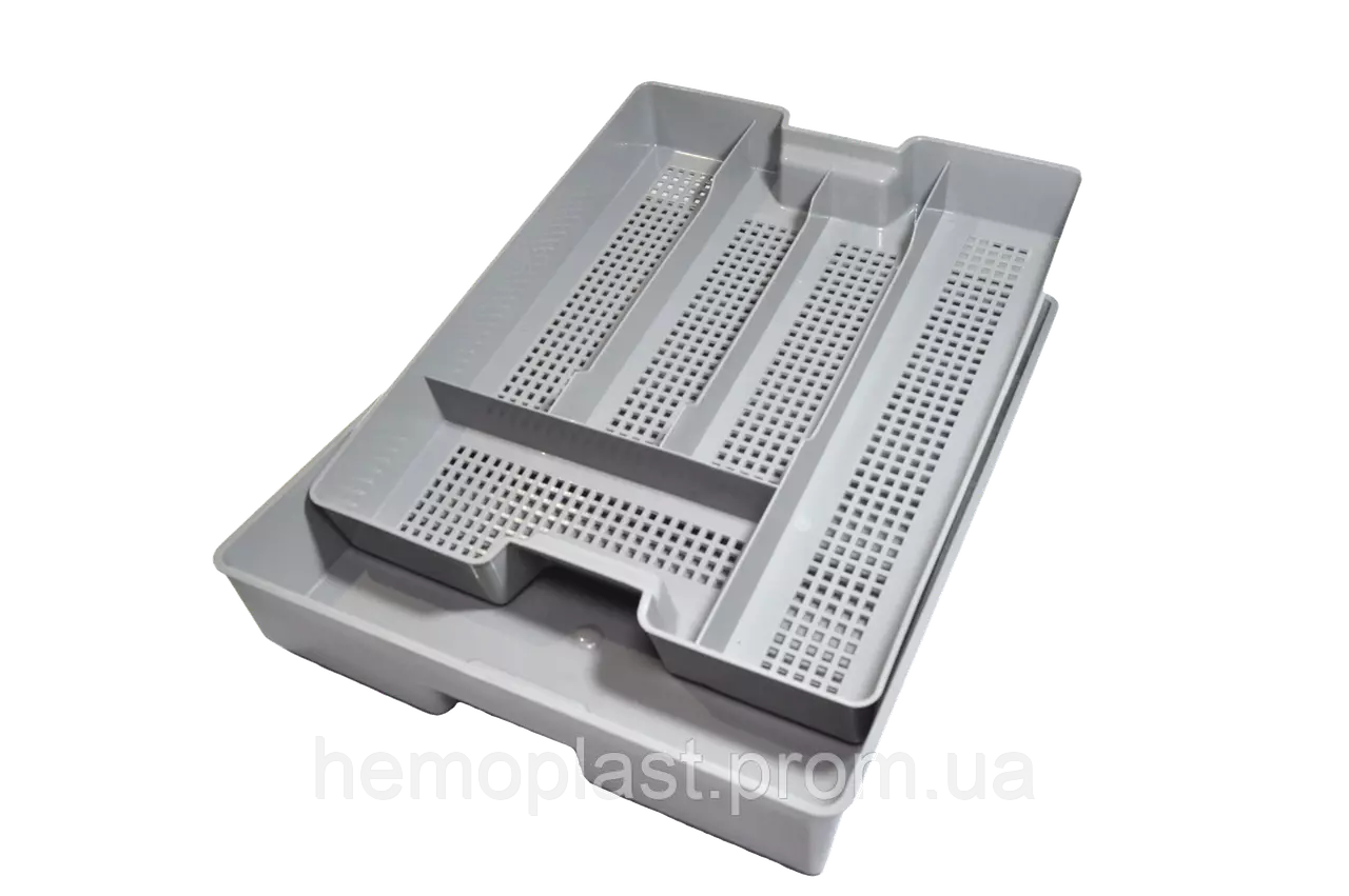 Лоток пластиковий для столових приборів з піддоном 370*295*60 мм Гемопласт
